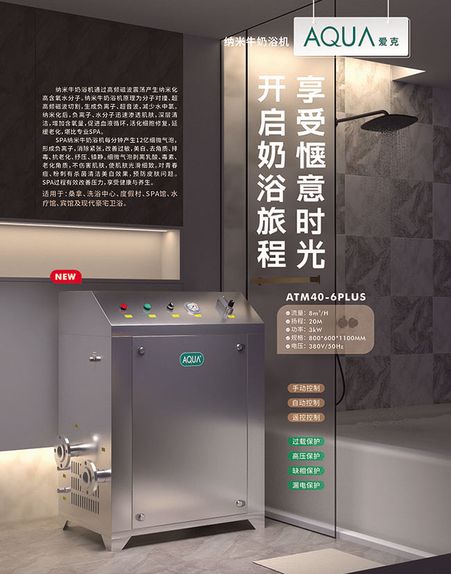 AQUA 愛克納米牛奶浴機(jī)工作原理神奇而高效,通過高頻磁波震蕩產(chǎn)生納米化高含氧水分子。納米化后的負(fù)離子、水分子如同獲得了 “加速通行證”,可迅速滲透肌膚,實現(xiàn)深層清潔,為肌膚注入充足氧氣,促進(jìn)血液循環(huán),喚醒細(xì)胞活力,修復(fù)受損細(xì)胞,延緩衰老進(jìn)程,讓您從內(nèi)而外散發(fā)年輕活力,盡享品質(zhì)生活。選擇 AQUA 愛克納米牛奶浴機(jī),就是選擇一種健康、純凈、水潤的生活方式,開啟您的專屬 SPA 之旅,擁抱生活的每一刻美好。
