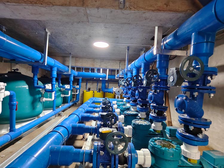 走進??谀掣叨诵^(qū)會所泳池,AQUA愛克的系列泳池設(shè)備——包括泳池水泵、過濾砂缸、中壓紫外線殺菌器、水質(zhì)監(jiān)控儀和投藥泵等,正協(xié)同運轉(zhuǎn),默默守護著水質(zhì)潔凈與安全。
