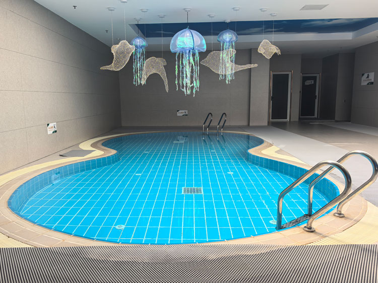 在確保水質(zhì)循環(huán)與凈化效果后,空氣源熱泵則從用戶體驗出發(fā),為泳池打造舒適的水溫環(huán)境。設(shè)備融合先進(jìn)的EVI補(bǔ)氣增焓、柔性除霜技術(shù),能夠高效從空氣中提取熱量,為經(jīng)過循環(huán)過濾的潔凈池水加熱,確保水溫始終維持在人體舒適范圍內(nèi),滿足高端酒店泳池對體驗感的高要求。