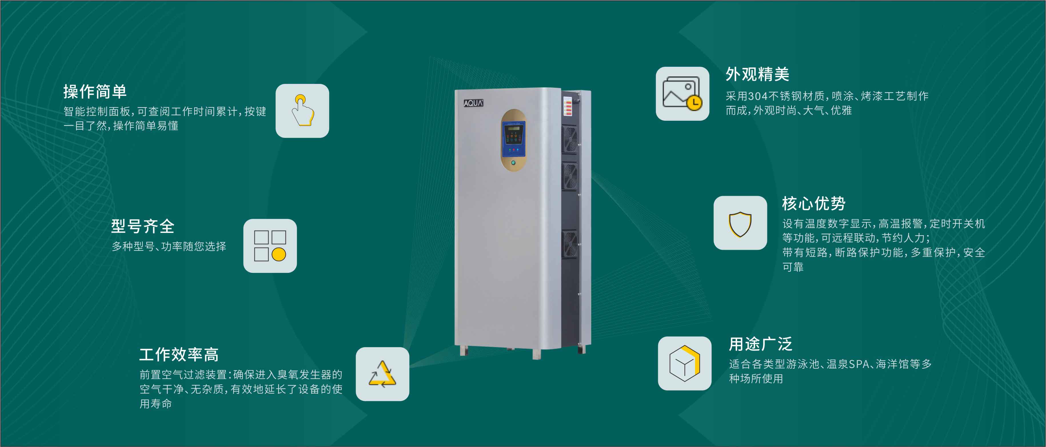 外觀時尚;立體式設計,占地面積小,節(jié)省空間,安裝簡易,AQUA愛克泳池消毒設備是游泳池、景觀池、海洋館、凈水處理、水產(chǎn)養(yǎng)殖、廢水處理、車間消毒等項目的理想選擇。