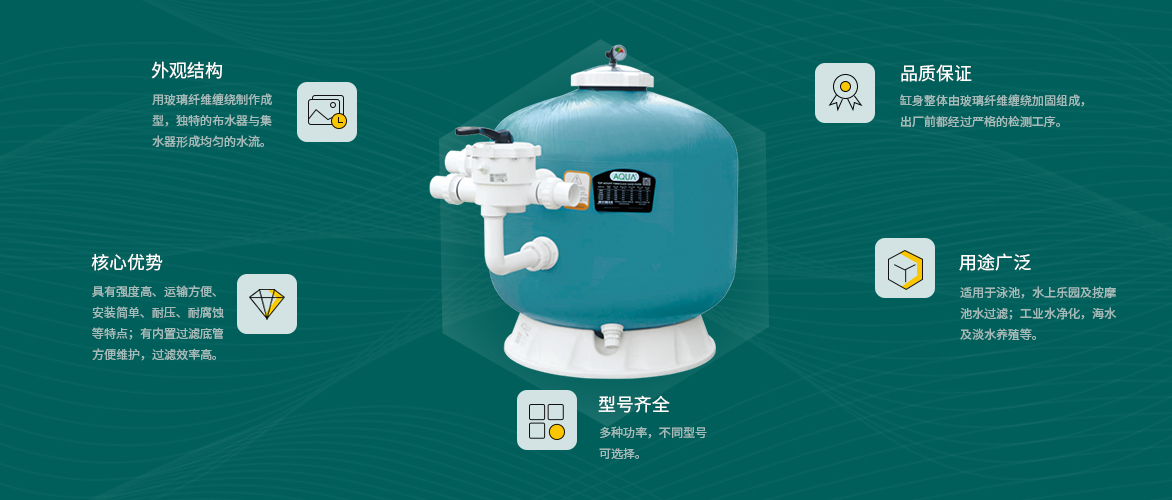 廣泛應(yīng)用于各類型泳池、溫泉SPA、景觀池、水產(chǎn)養(yǎng)殖、飲用水處理等各種需要過濾凈化的場(chǎng)所。