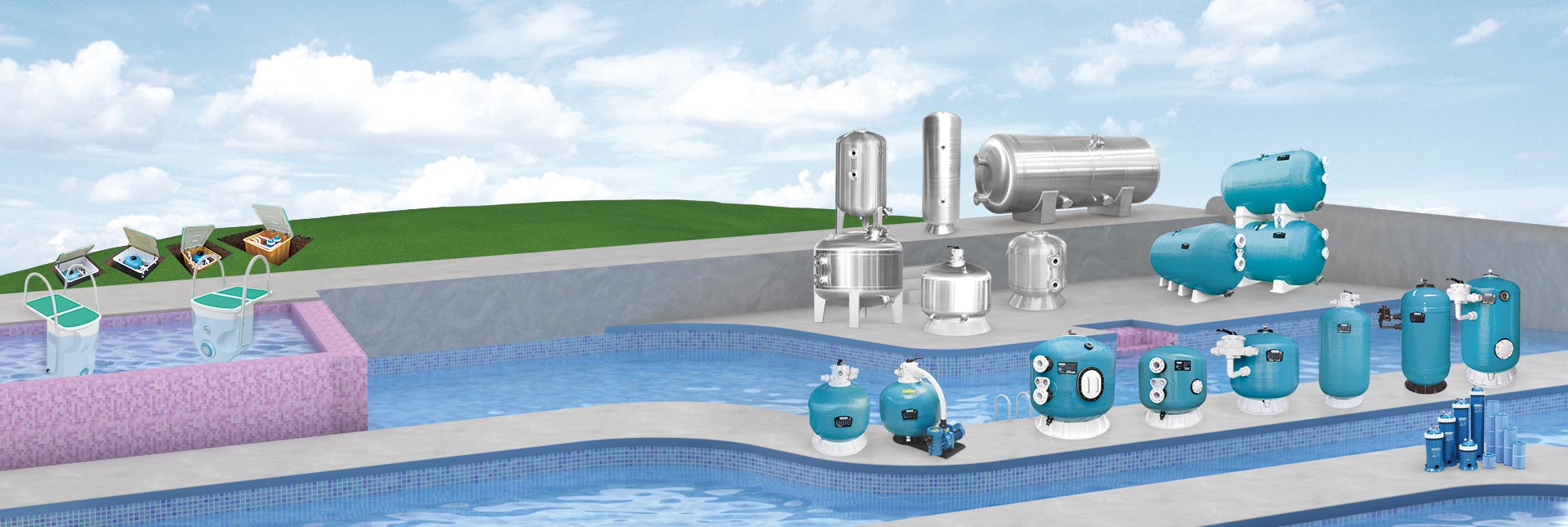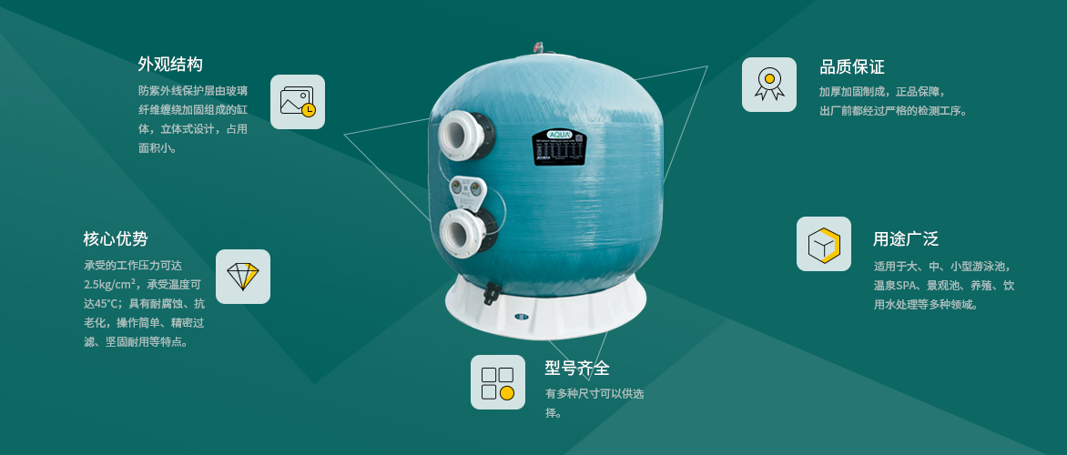 AQUA愛克泳池設(shè)備旗下過濾砂缸適用于任何濾料,有多種尺寸可供選擇。