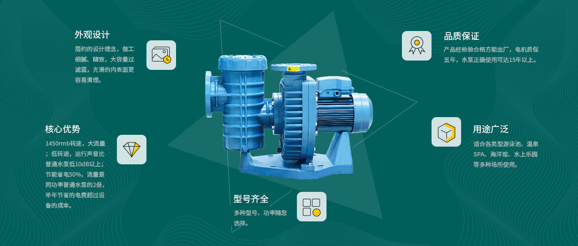 AQUA愛克泳池設備旗下的泳池循環(huán)水泵水泵適用于70℃的溫泉,承壓可達6kg/cm2,是適合各類型游泳池、溫泉SPA、海洋館等多種場所使用的水泵泳池設備。