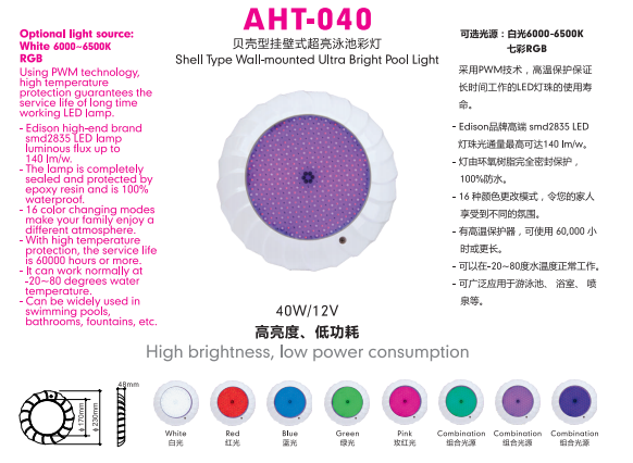 AQUA愛克泳池燈使用簡便,外觀精美,是一種可廣泛應用于游泳池、水景、水上樂園等場所的泳池設備燈具。