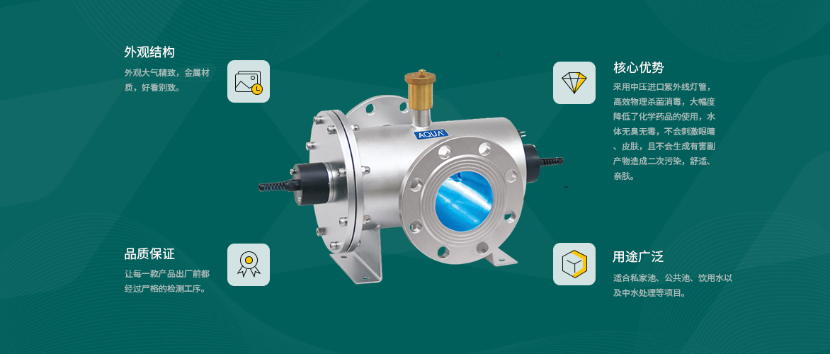 Stylish appearance; three-dimensional design, small footprint, space saving, easy installation, is an ideal choice for swimming pools, landscape pools, aquariums, water purification, aquaculture, wastewater treatment, workshop disinfection and other