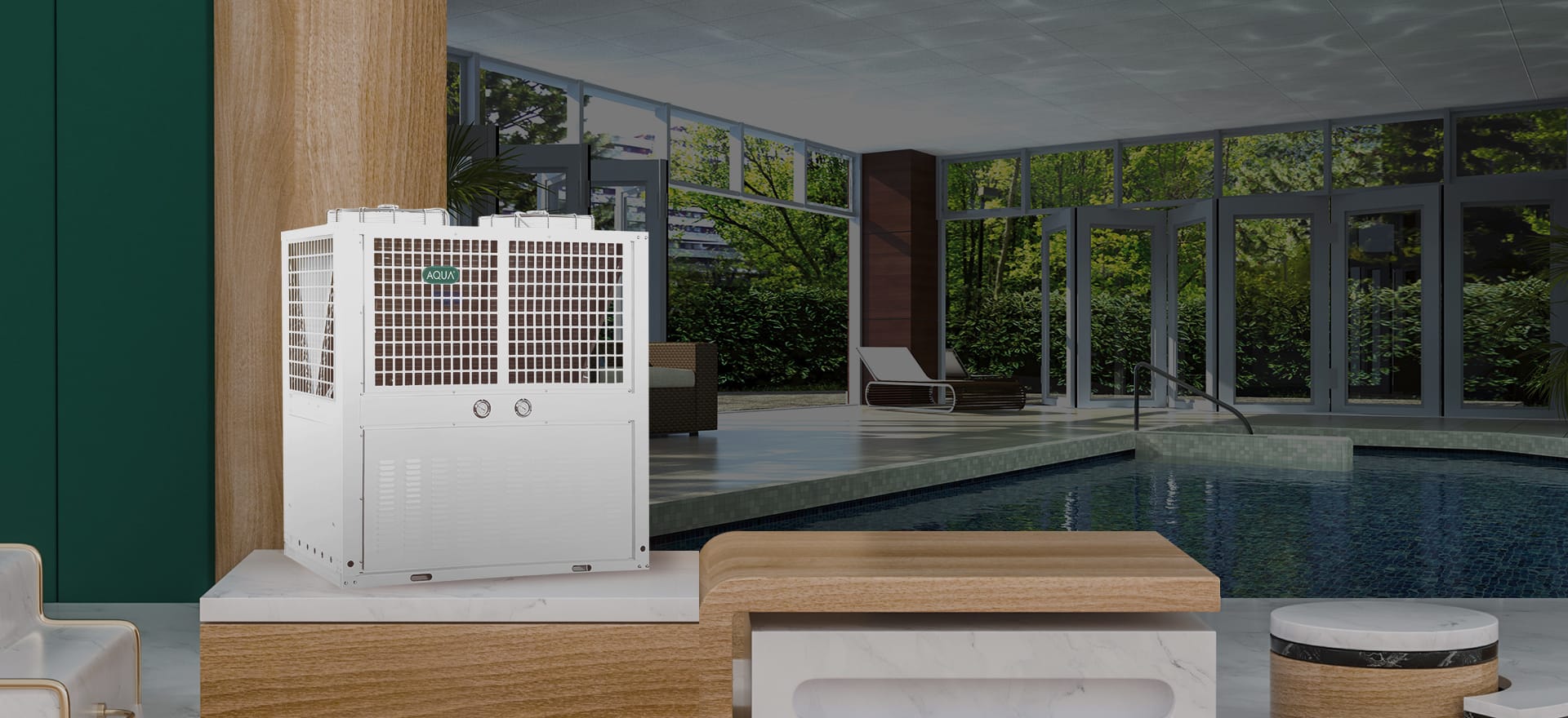AQUA愛克泳池設(shè)備旗下的恒溫熱泵分為常溫型和低溫型。熱泵是一種從低溫熱源吸取熱量,使其在較高溫度下轉(zhuǎn)換為可以利用能源的裝置。