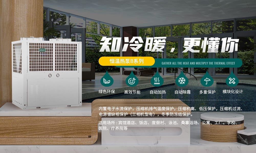 Air source heat pump外觀優(yōu)雅、大氣,抗老化、耐腐蝕。全天候可靠工作??諝庠礋岜檬且环N從低溫熱源吸取熱量,使其在較高溫度下轉(zhuǎn)換為可利用能源的高效率的環(huán)保節(jié)能型產(chǎn)品。AQUA愛克空氣源恒溫熱泵分為常溫和低溫兩種不同型號。