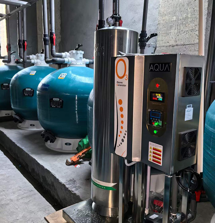 為了確保泳池水的清潔和安全,泳池消毒設(shè)備也必不可少。湯泉度假酒店泳池項目配置的AQUA愛克臭氧消毒一體機,集臭氧消毒、除藻、絮凝、活性炭過濾等功能于一體,能夠迅速殺死水中的各種細菌和病毒,保證泳池水的衛(wèi)生和安全。