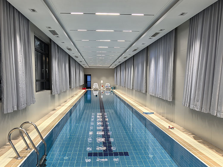在嚴寒冬季,一個高效穩(wěn)定且節(jié)能的泳池恒溫除濕系統(tǒng)是每個業(yè)主都夢寐以求的。濟南某高端別墅泳池安裝AQUA愛克空氣源泳池恒溫?zé)岜?、三集一體除濕熱泵之后,成功實現(xiàn)了這一愿望。AQUA愛克空氣源泳池恒溫?zé)岜?/span>可從室外空氣中獲取源源不斷的免費熱量來加熱池水,制熱快、耗電少、更穩(wěn)定,一年四季保證池水恒溫舒適,并且智能控溫不會忽冷忽熱。